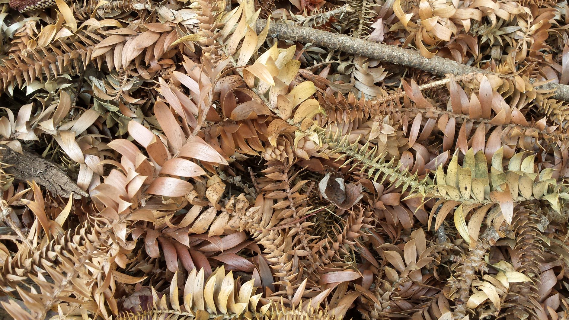 #1880 Araucaria bidwillii Bunya Pine, ground litter. The pine was planted in 1883